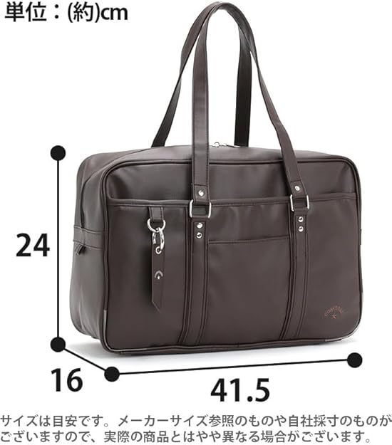 ブランドロゴ刺繍がポイントの合皮スクールバッグ。