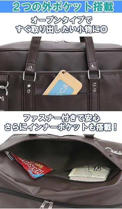 すぐに取り出したい荷物に便利なオープンポケットと、インナーポケットが2つ搭載されたファスナーポケットの2種類の外ポケットを搭載!
