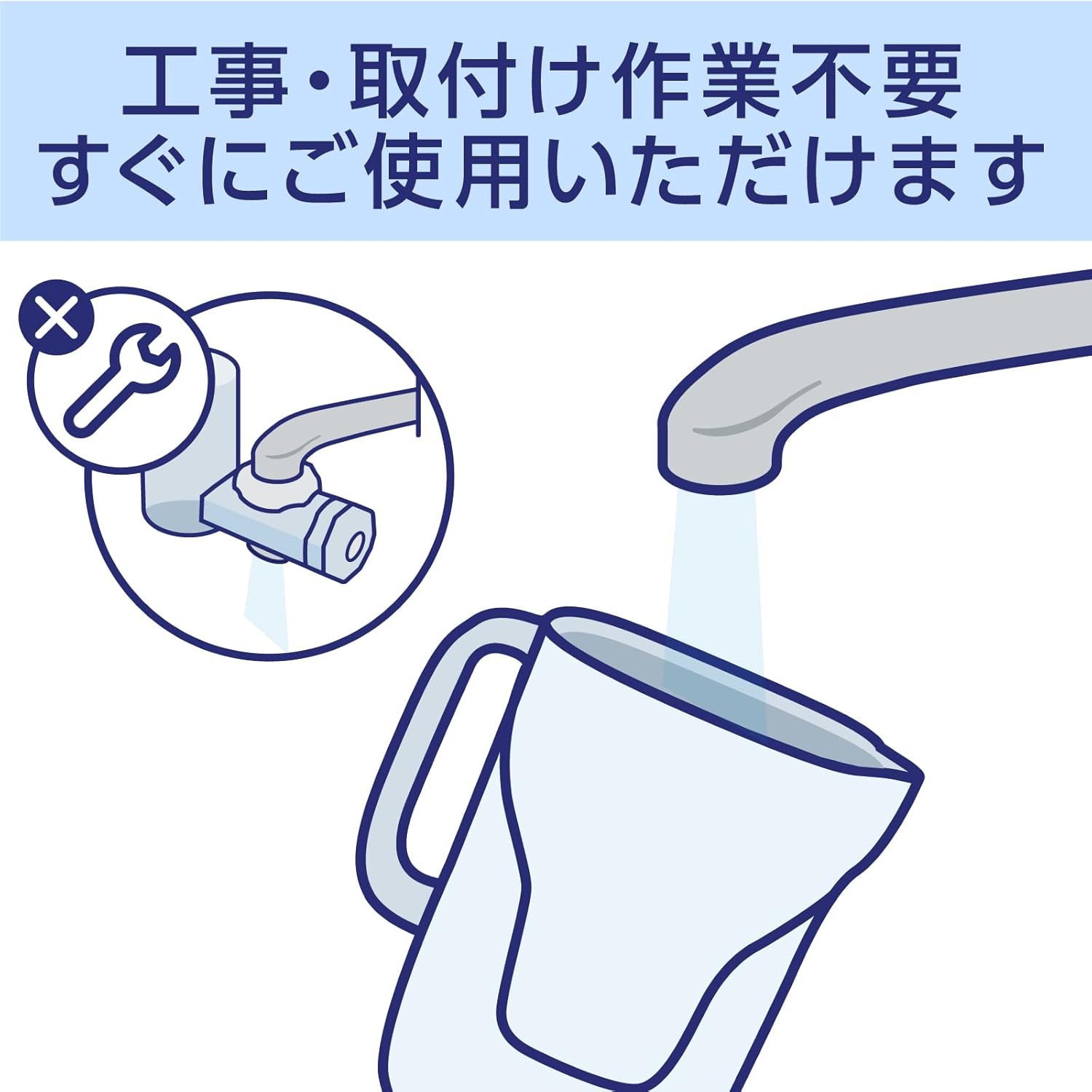 カートリッジ1個=総ろ過水量:150L 交換目安:4週間に1回推奨 (1日5.3L使用の場合)