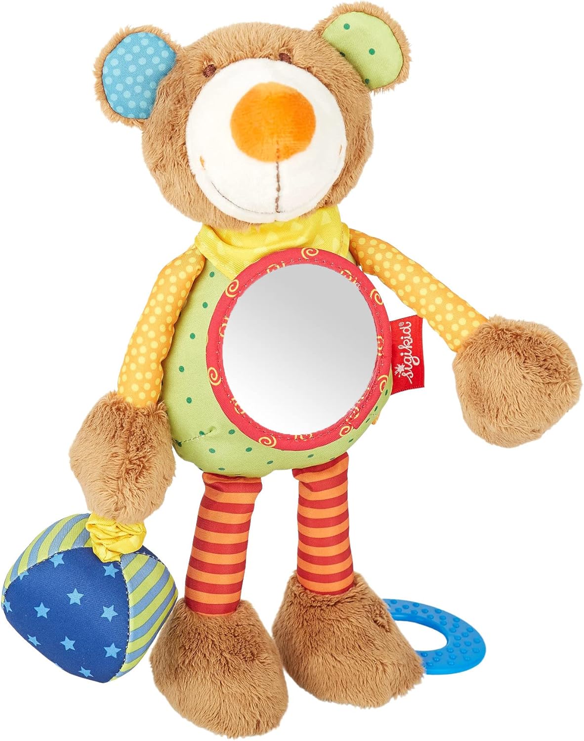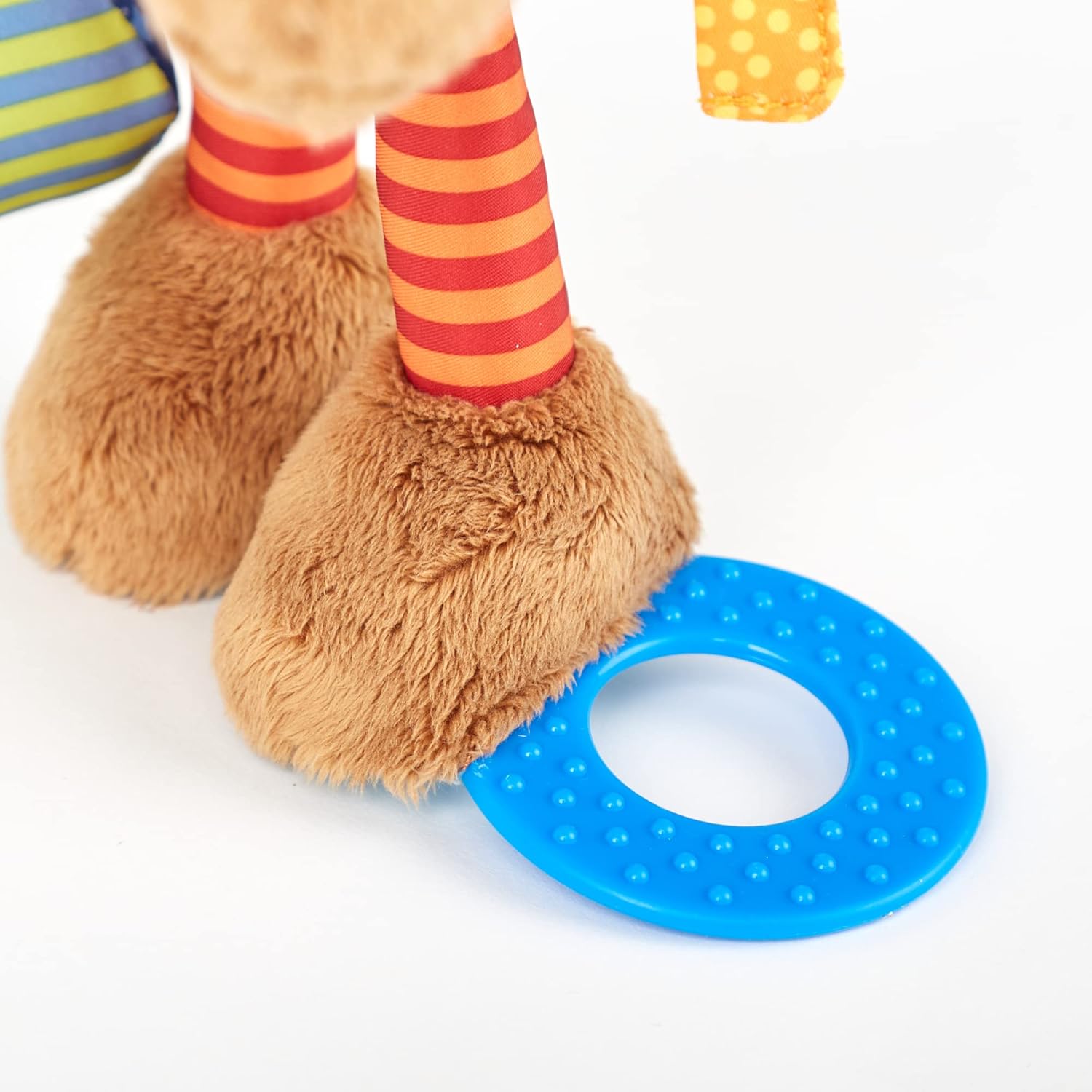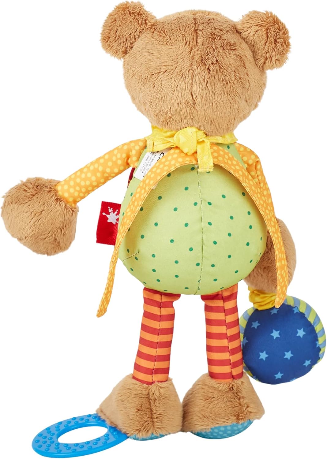 体や手足などに歯固め・鈴の音などのしかけがついていて、赤ちゃんの触覚を刺激します。