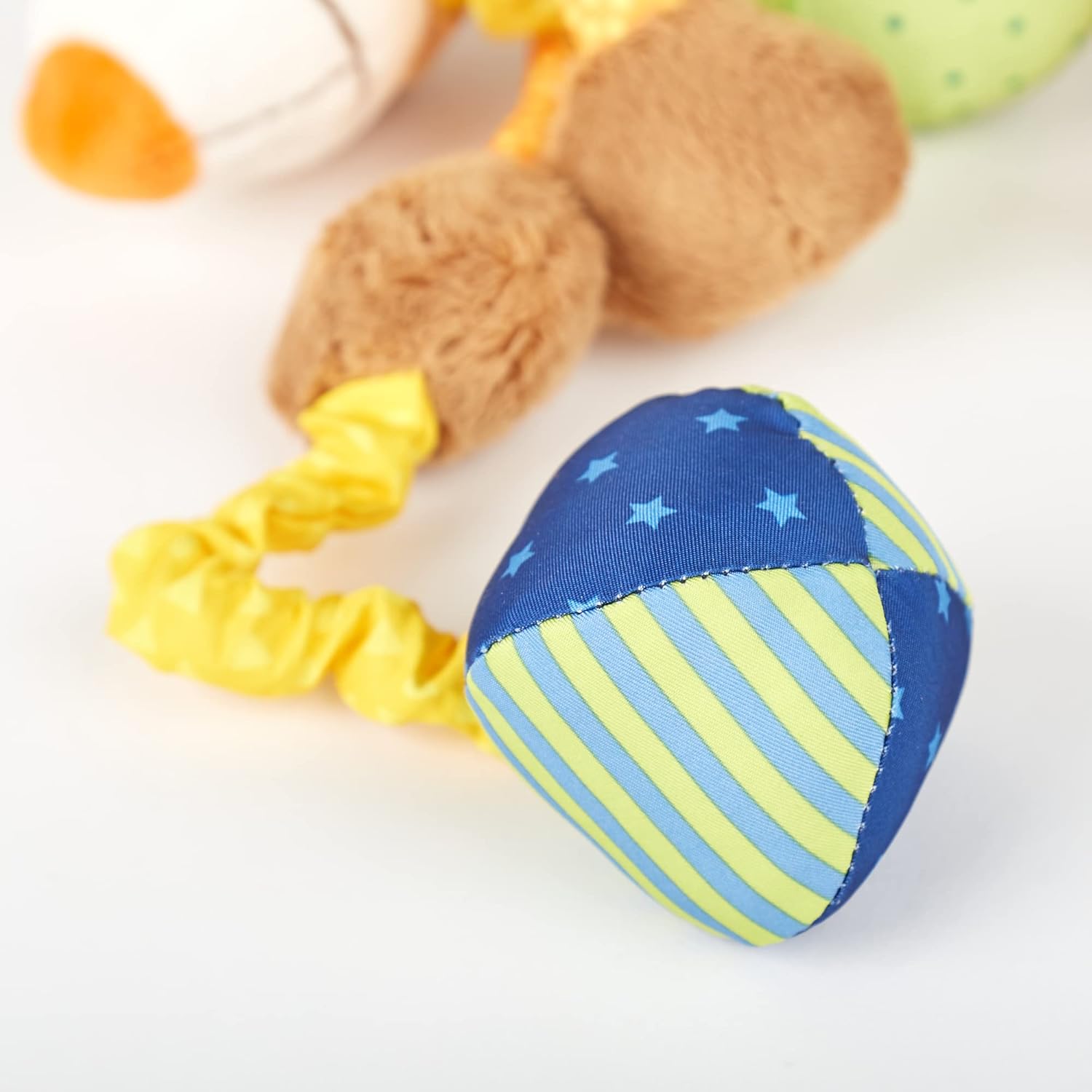 布製の遊具は、お母さんや自分の匂いがつきやすいので、お出かけ時の不安を軽減してくれる役割も。