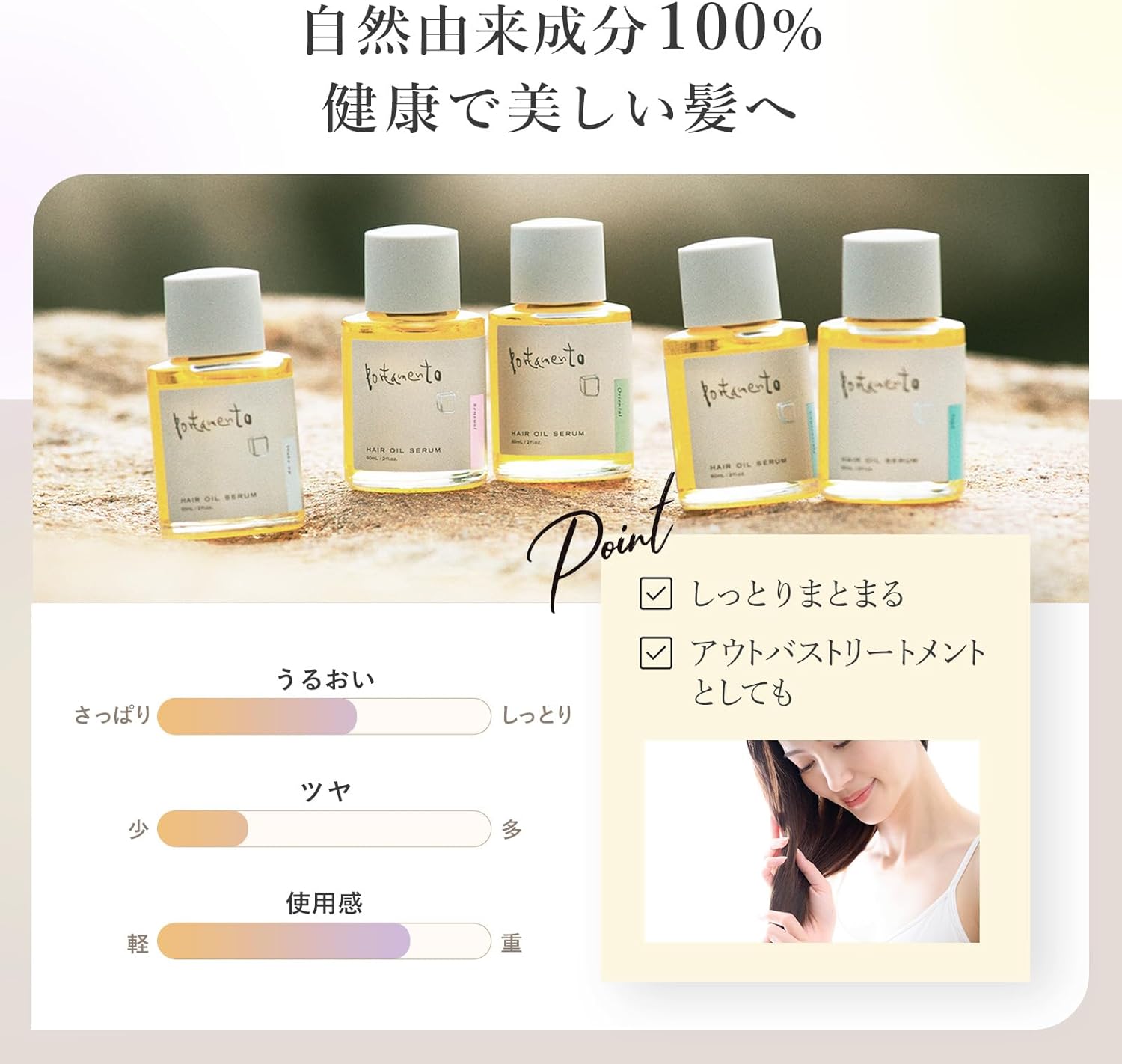 髪と頭皮に潤いとツヤ・輝きを。ふわっと軽いナチュラルな仕上がりに。