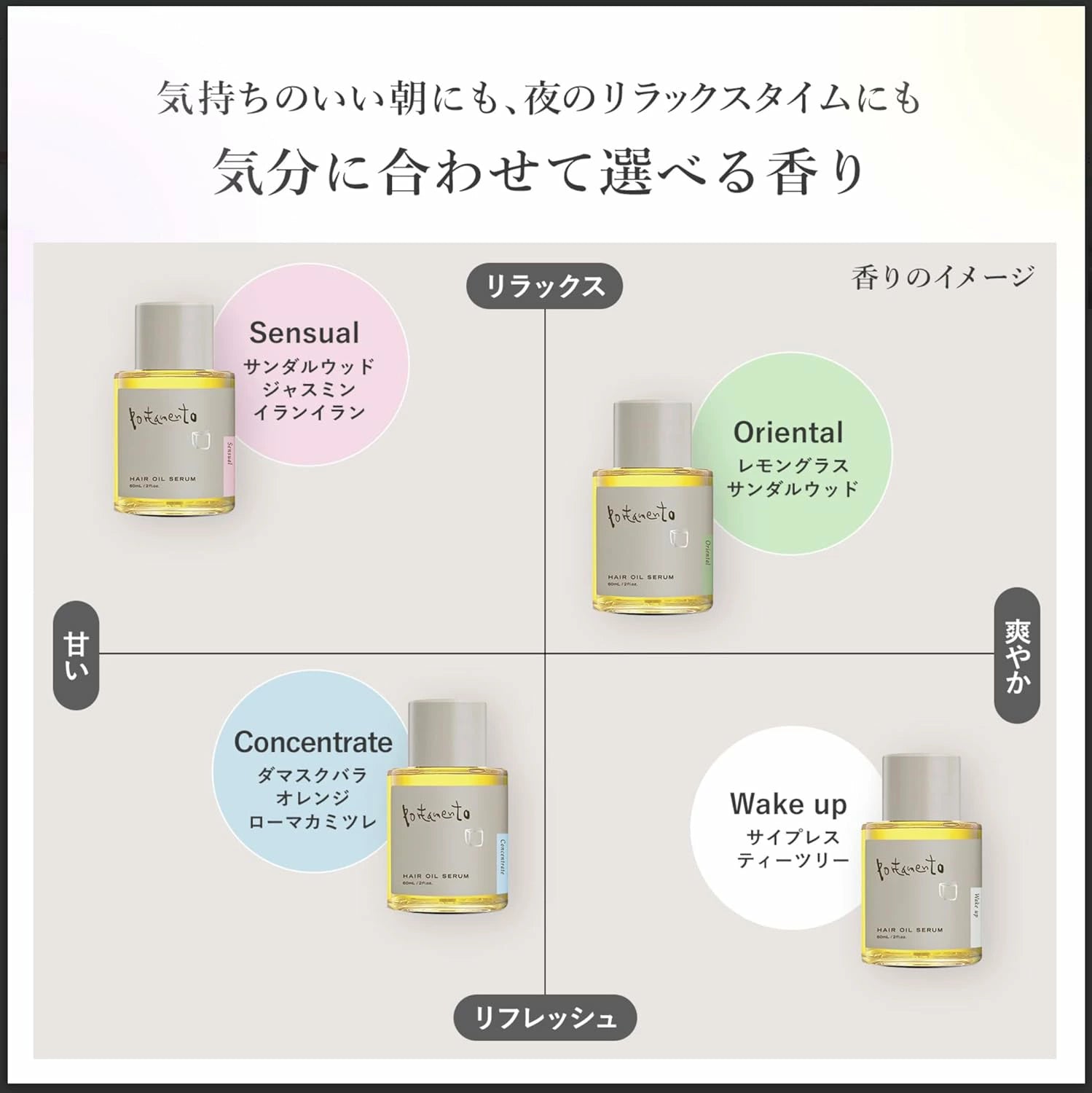 「Sensual」「Wake-up」「Concentrate」「Oriental」「Yoga」の5種類のラインナップで、その日の気分やモードに合わせて、5つのコンセプトの香りが楽しめます。