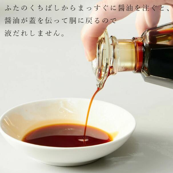 ・ふたのくちばしからまっすぐに醤油を注ぐと、醤油が蓋を伝って胴に戻るので液だれしません。