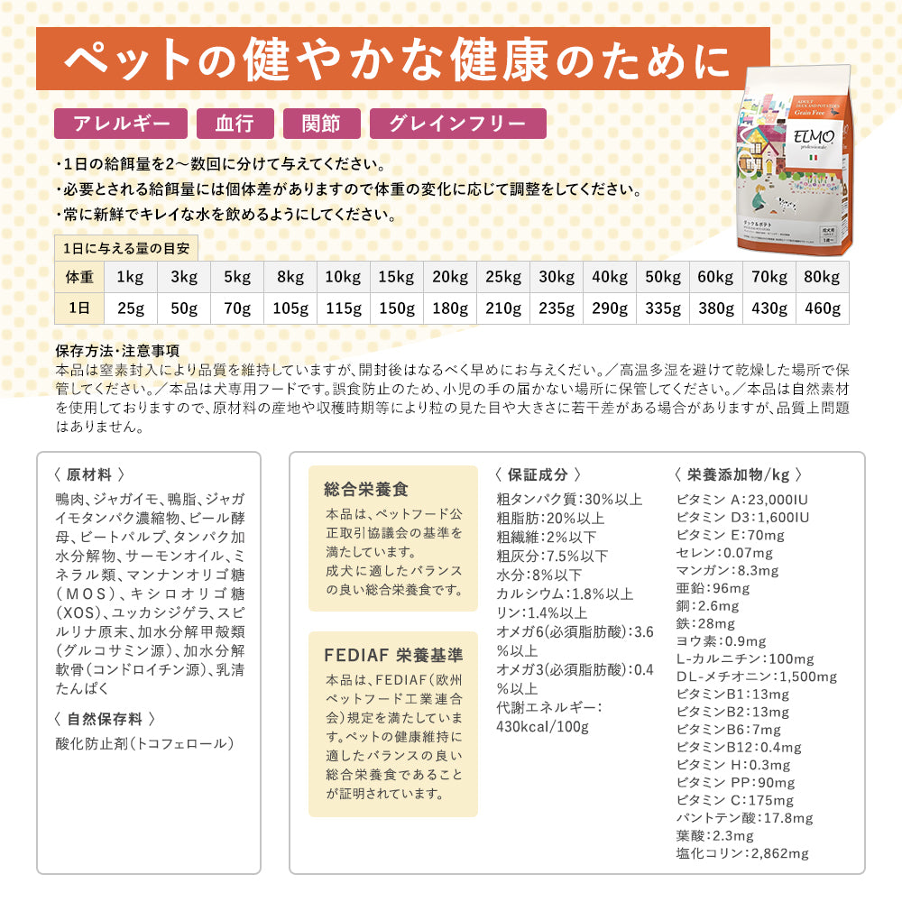 ![画像をギャラリービューアに読み込む, [ ELMO ] エルモ プロフェッショナーレ ダック&ポテト 〈800g〉 アダルト 成犬用 1歳から イタリア製 ドッグフード 高タンパク質 人工着色料不使用 人工保存料不使用 獣医師推奨](http://takewith-ink.com/cdn/shop/files/ats21013000_7_e3a8dab4-c871-4dd9-8c42-99e83c62177b_110x110@2x.jpg?v=1706246010)