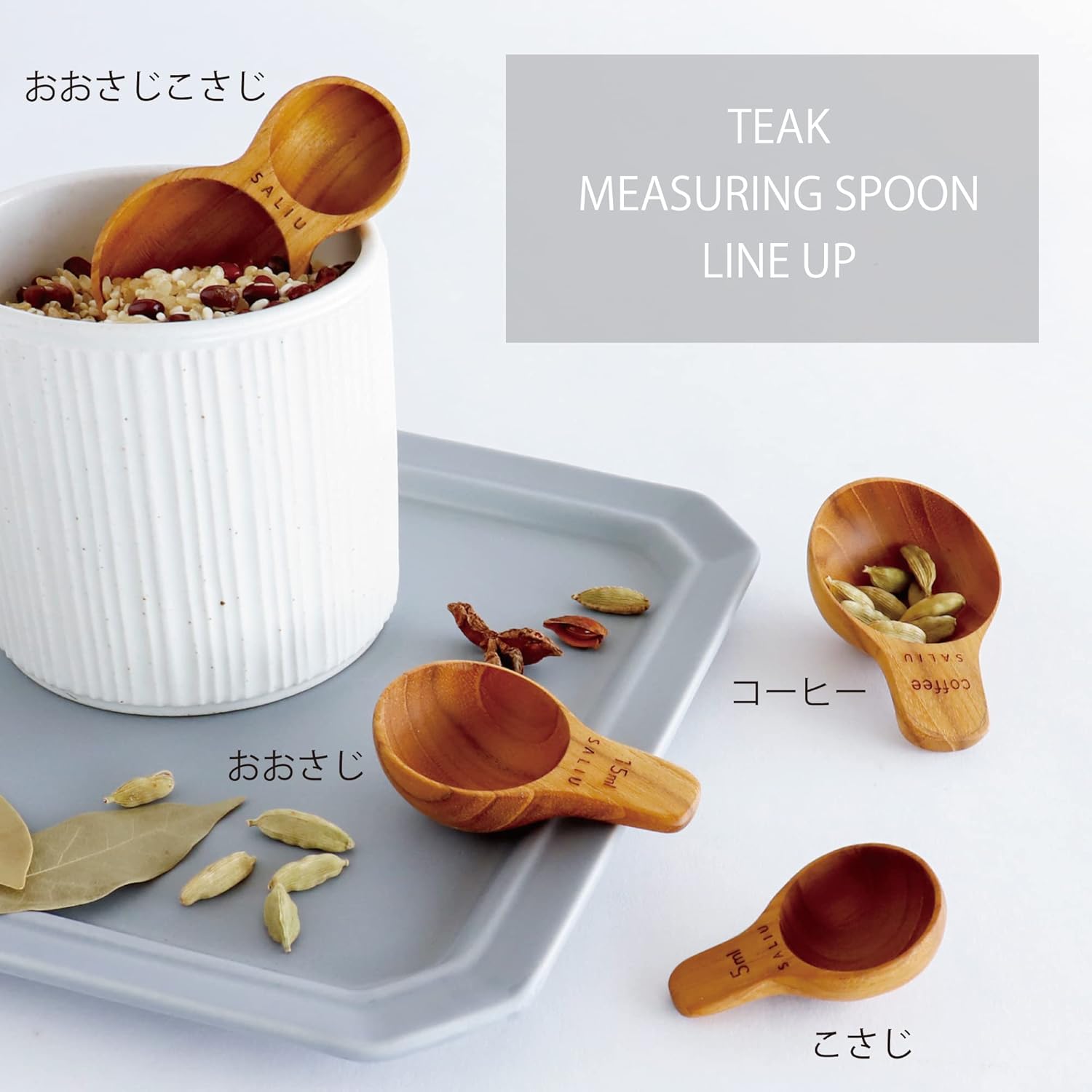料理の際、計量スプーンとしてお使いいただけるほか、コンパクトなのでキャニスター用として、コーヒーや茶葉、調味料など様々な用途で使用可能。