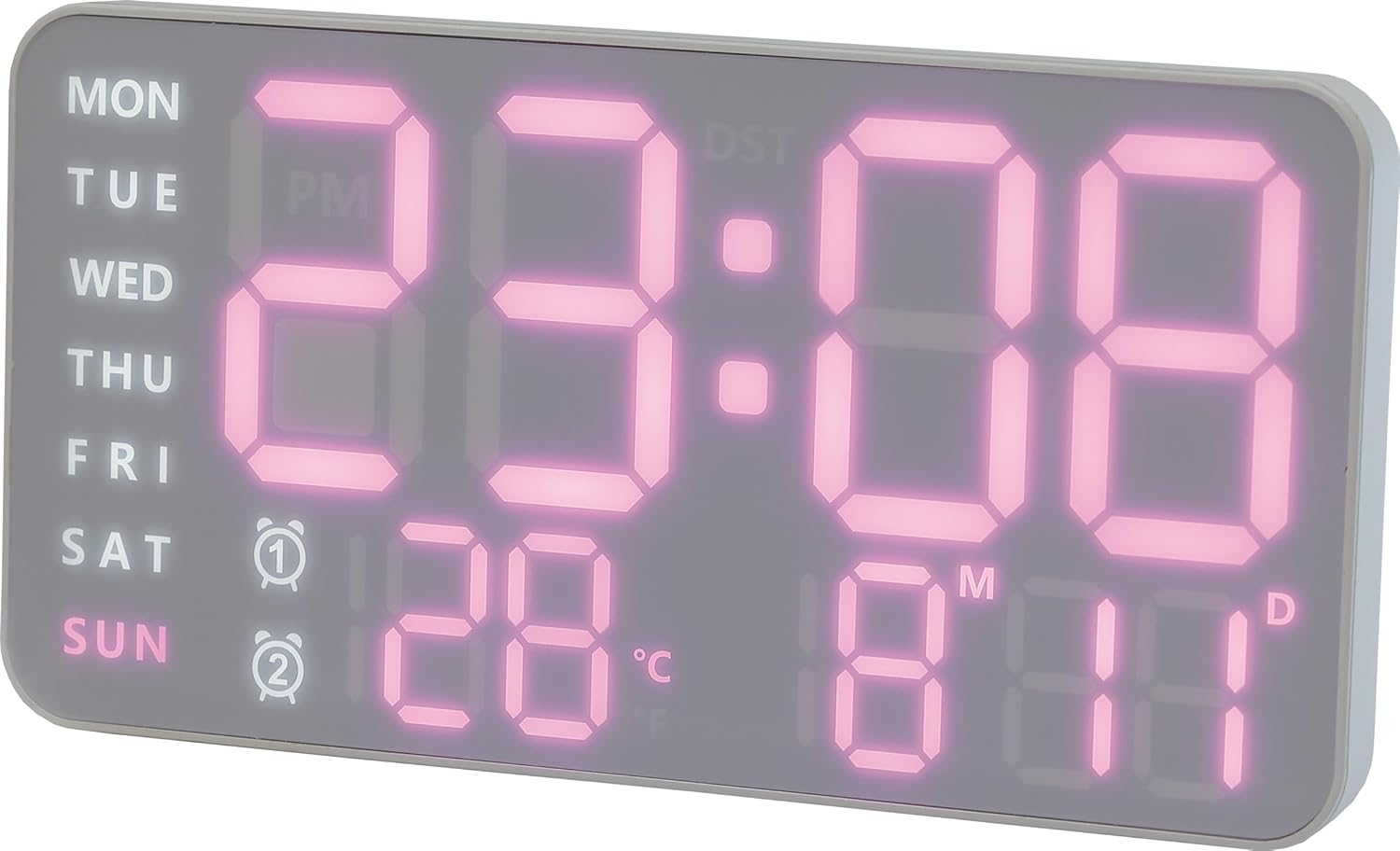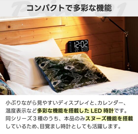 ●多機能LED時計: カレンダー、温度表示、サマータイム設定など多彩な機能を搭載。