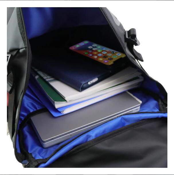 メインルーム直通の側面ファスナーがあり背負ったまま荷物の出し入れが可能。 ブルーのインサイドカラーで中が見やすく、使い勝手ばっちり。